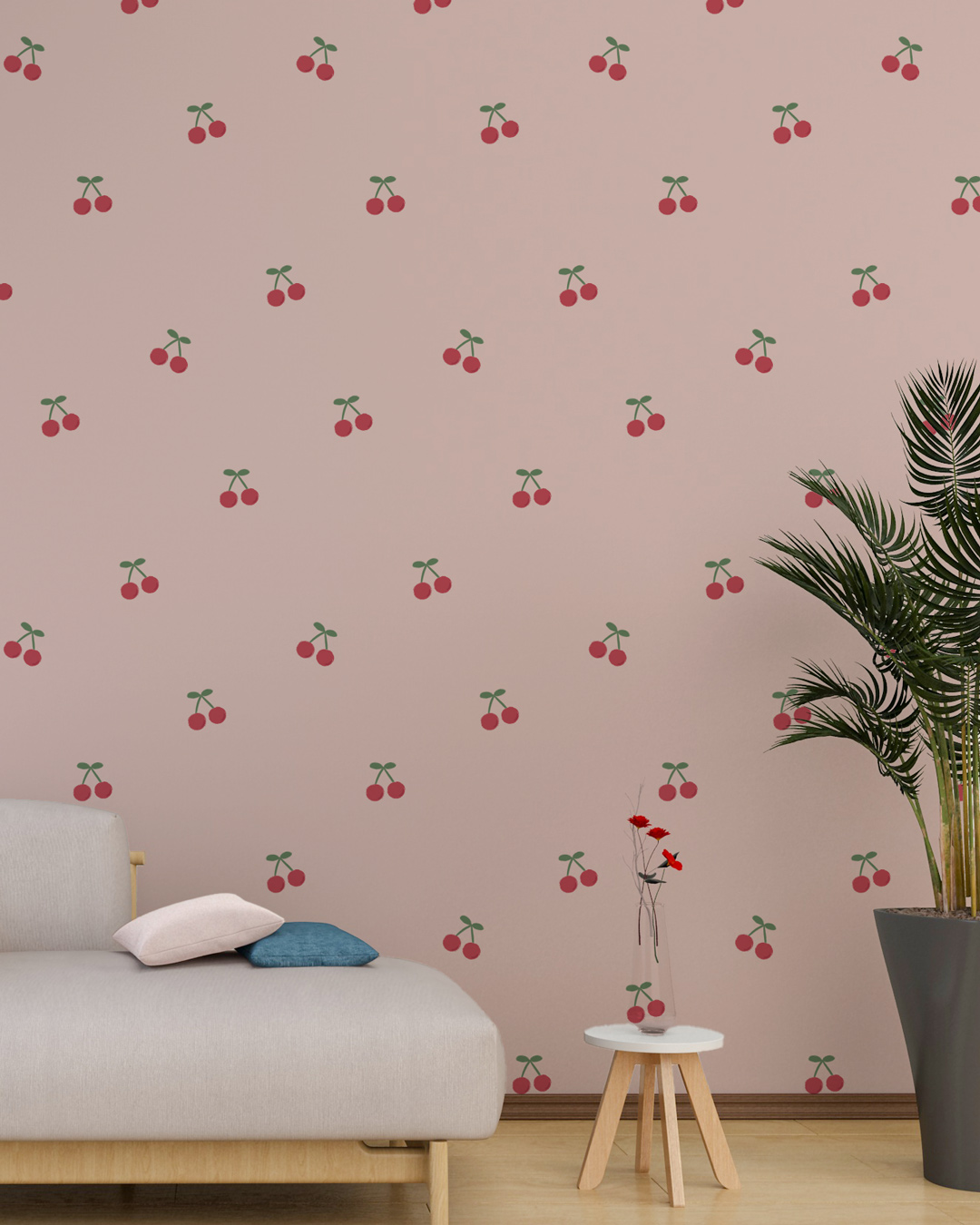 Un papier peint cerise enfant au style rétro et joyeux, parfait pour une chambre pleine de fraîcheur. Disponible en rose poudré et gris doux, avec un motif épuré inspiré des années 50.