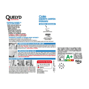 La colle papiers peints intissés en doses de QUELYD colle tous les papiers peints de type : intissés, vinyles sur intissés, vinyles expansés sur intissés et intissés à peindre. Cette formule amylacée a été spécialement élaborée pour faciliter la préparation de la colle grâce à ses 3 doses et optimiser la pose du papier peint directement sur le mur.