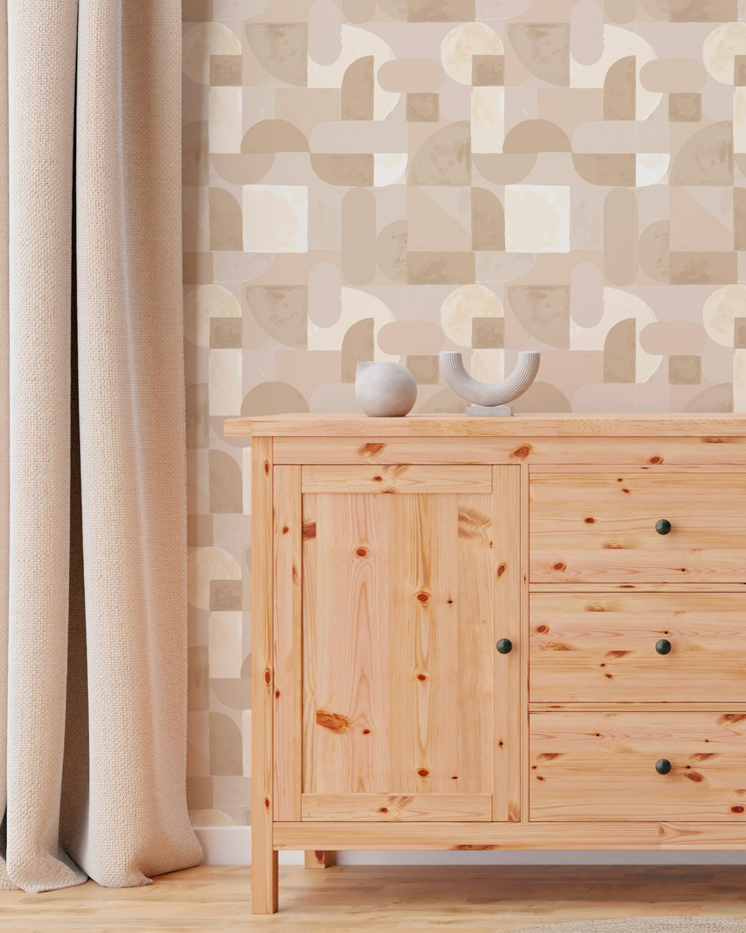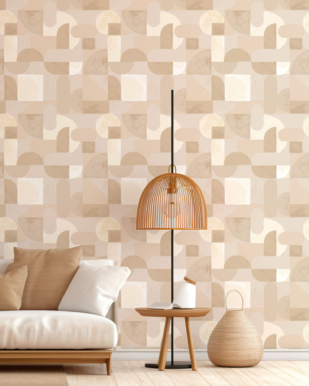 Habillez vos murs avec cette tapisserie géométrique aux tons naturels, douce et graphique, parfaite pour un intérieur apaisant et design.