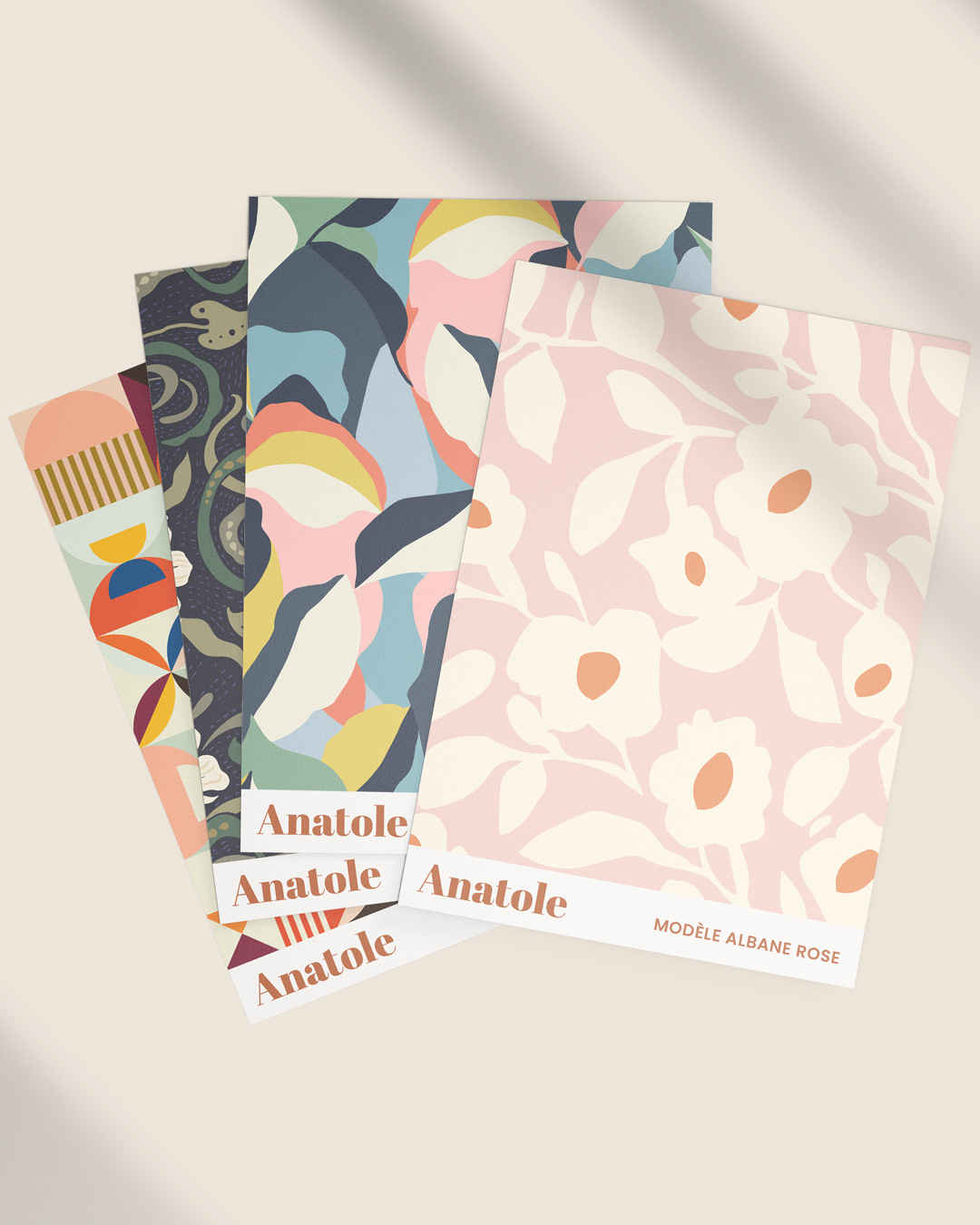 Les échantillons livrés sont au format A4, imprimés sur notre papier peint 185g/m2.