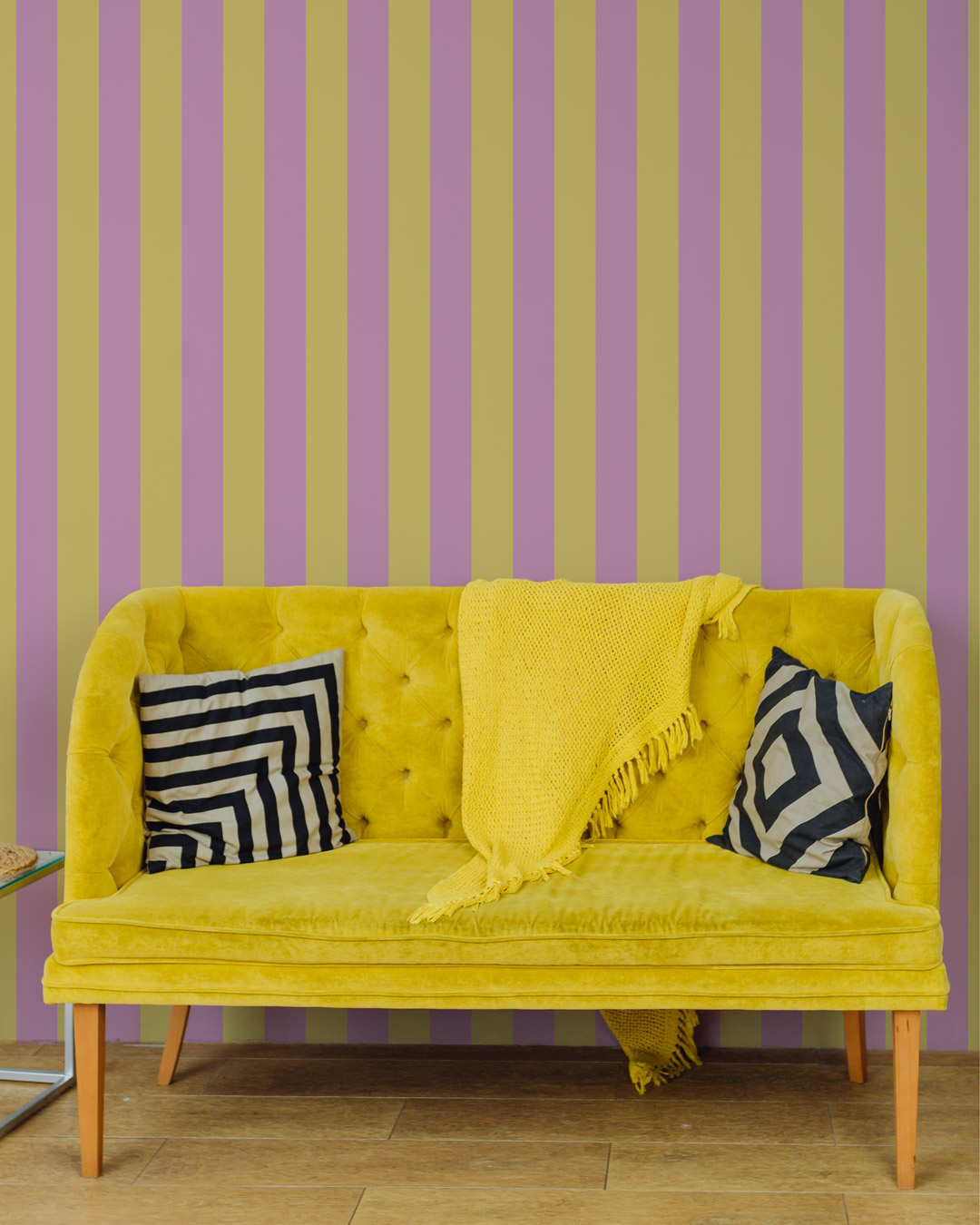 Grâce à son duo de teintes, ce papier peint rayé apporte une véritable explosion de couleur. Le rose flashy évoque la modernité, la fantaisie et l’optimisme tandis que la couleur associée (souvent un jaune lumineux ou un orangé doux selon la déclinaison) apporte de la chaleur. Ensemble, elles créent une harmonie audacieuse, équilibrée par la régularité des rayures.