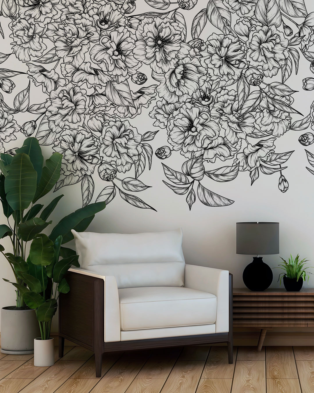 Afin d’éviter les mauvaises surprises lors de la pose de votre papier peint sur-mesure, nous recommandons d’ajouter 5 à 10cm de marges de sécurité aux dimensions de votre mur pour différentes raisons :