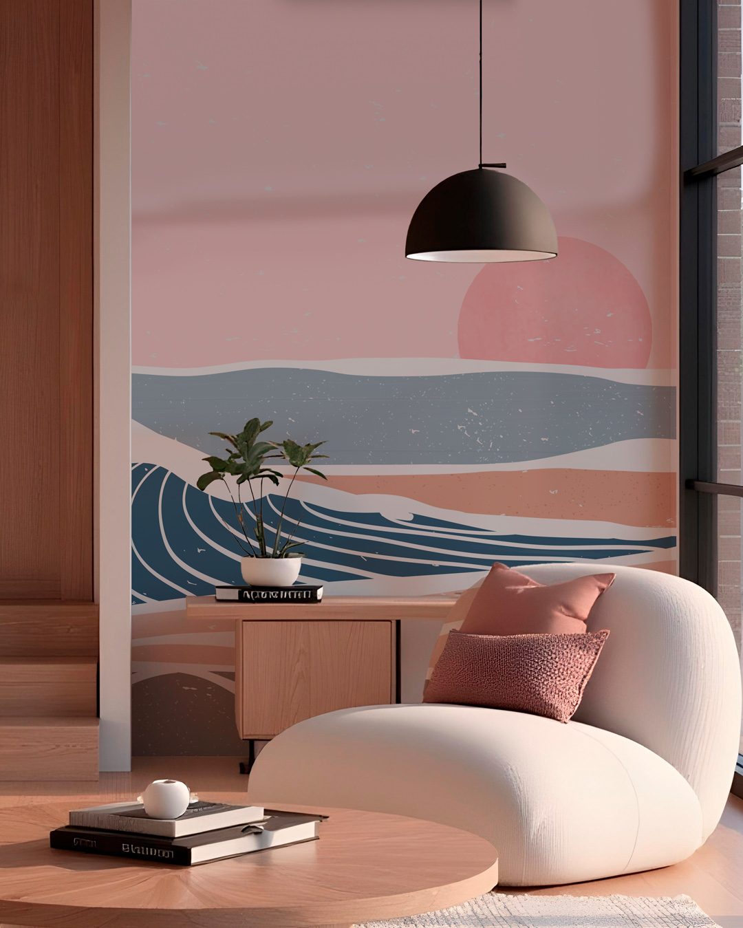 Installer un papier peint panoramique vague minimaliste dans votre intérieur, c’est choisir d’apporter une ambiance à la fois artistique et reposante. Dans une salle à manger, il devient le point focal autour duquel s’organise l’espace. Dans une chambre, il crée un cocon apaisant, propice au repos. Dans un bureau, il favorise la concentration en instaurant une atmosphère calme et équilibrée.