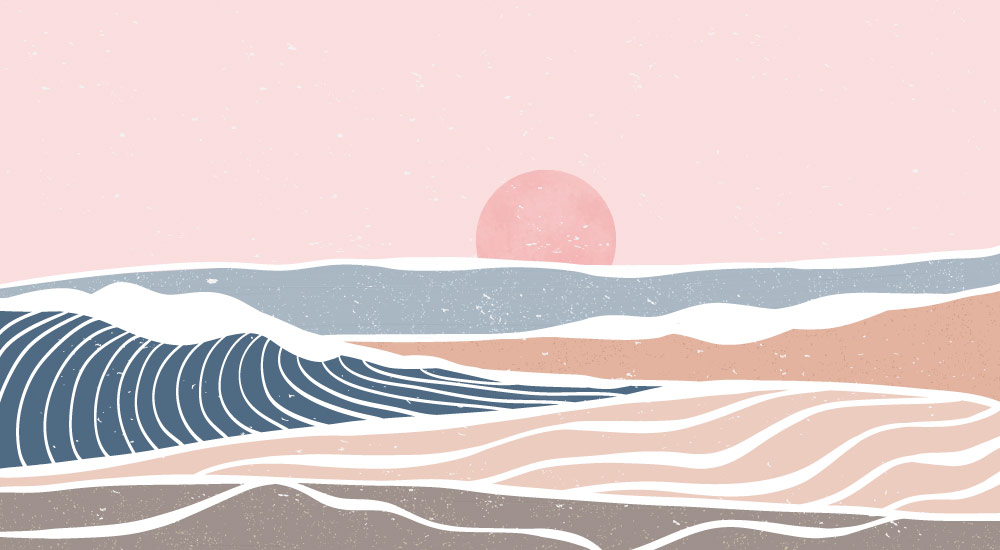 La présence d’un soleil couchant stylisé, subtilement intégré dans le décor, ajoute une note poétique. Cette touche graphique évoque les instants paisibles d’une fin de journée au bord de l’océan, idéale pour instaurer une atmosphère propice à la détente et au bien-être. Découvrir la collection panoramique.