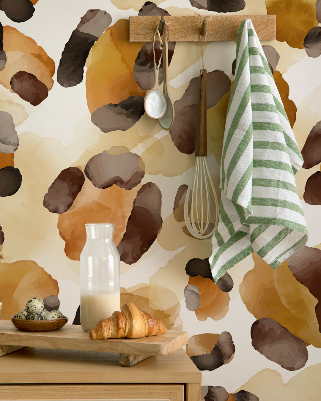 Côté couleurs, optez pour une palette complémentaire aux tons du motif – beige, sable, terracotta, noir profond, ou encore vert olive pour un esprit nature.