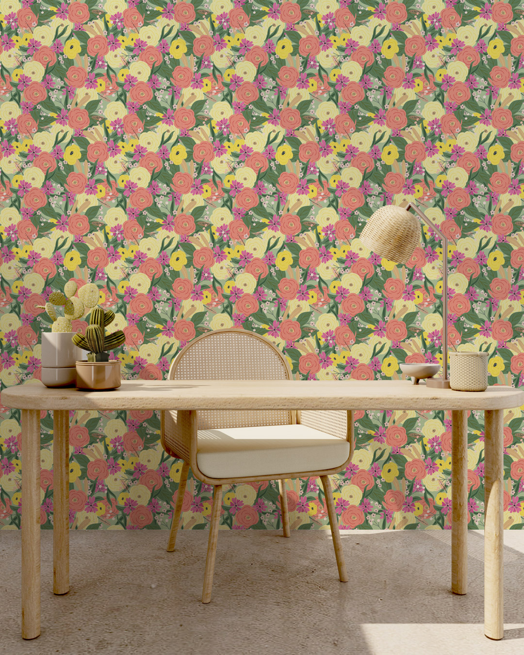 Comment accessoiriser un papier peint fleuri acidulé ?