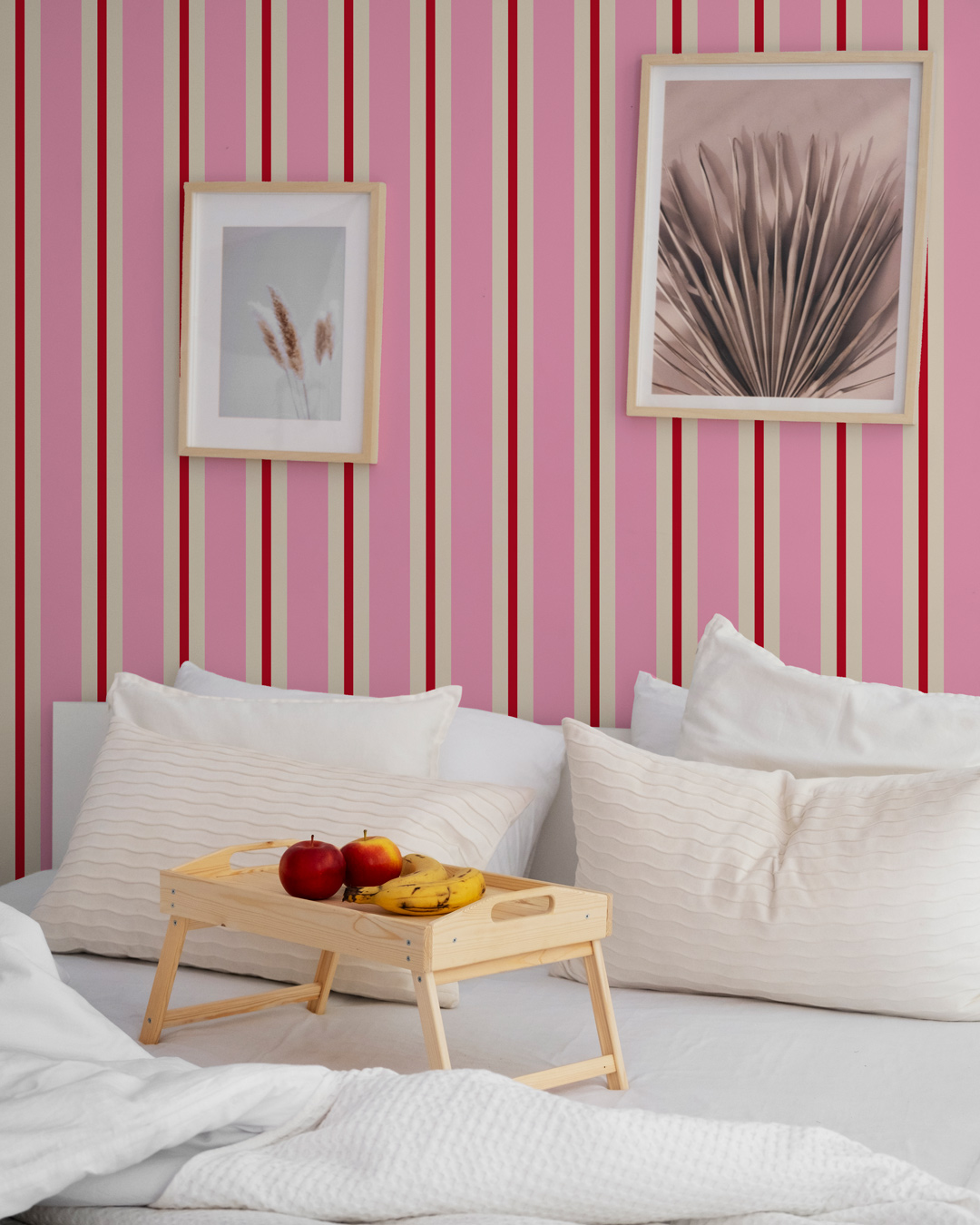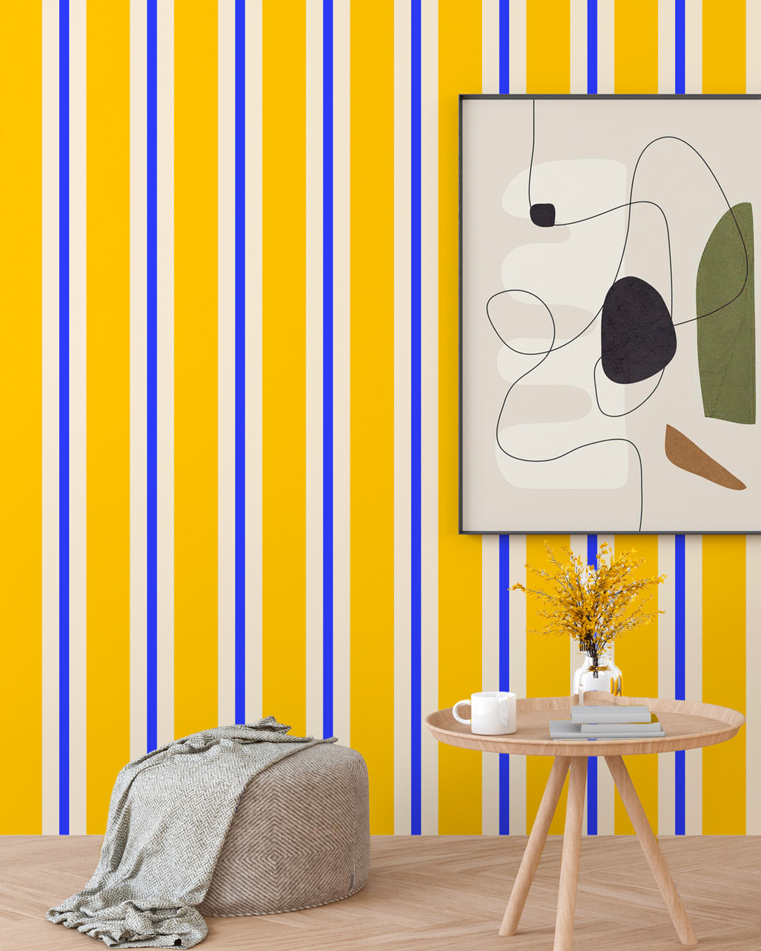Un papier peint rayure original au style graphique et vertical, idéal pour structurer vos espaces avec élégance. Disponible en beige, jaune, rose, bleu et vert.